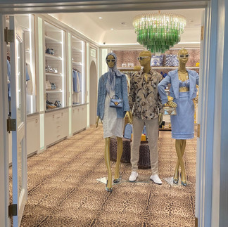 Despite the numerous dining choices within walking distance, we opted to have breakfast at the hotel on our last morning in Palm Beach due to the unbearable heat in Miami in September. The hotel features a charming cafe called Pink Paradise Cafe with a delightful menu. We indulged in some smoothies, sampled a few treats from the bakery section, and picked up something for our furry friend. Additionally, the cafe offers delicious wraps and sandwiches that can be prepared for beach picnics. We took our breakfast to the lobby and settled into one of the many seating areas. It was then that I noticed the Dolce & Gabbana Pop-Up shop. I appreciate how boutique hotels are incorporating designer pop-up shops, providing a unique shopping experience compared to regular stores. Following breakfast, we decided to explore the area using a golf cart (yes, they have an adorable golf cart service for beach transportation and sightseeing) to admire the stunning homes. Before leaving Palm Beach, we made a pit stop at Bice, a restaurant located near Worth Avenue, for lunch.